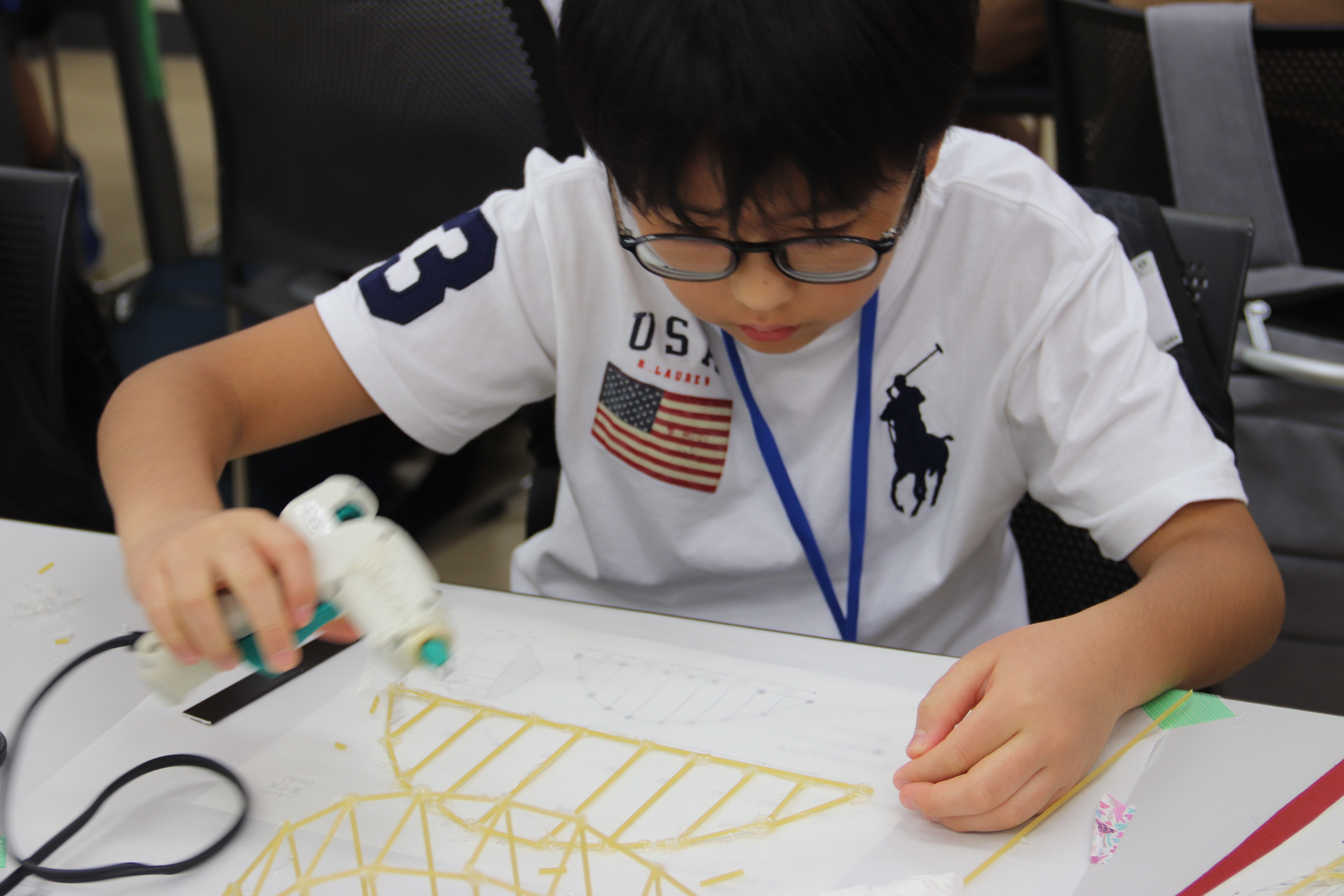 After the lecture was over, children started to design and make a pasta bridge. Each child designed a strong bridge and made it using pasta and hot bond. We, students, supported them making pasta bridges. The event to make a pasta bridge with pasta and hot bond has held at May Festival, the school festival, but the event to design it does not have held. Therefore we were concerned about whether children could design it. However, they were designing and making it so well that they blew away our worries. 講演が終わったあと、実際に子どもたちがパスタブリッジ製作を体験する時間となりました。子どもたちはみなそれぞれ強いと思う橋を設計し、パスタとホットボンドを用いて製作していました。私たち学生は、パスタブリッジ製作をしている子どもたちのサポートをしました。パスタとホットボンドを用いてパスタブリッジを製作する部分は五月祭のようなイベントでも実施していますが、パスタブリッジの設計は実施していないため、子どもたちが設計できるか不安がありました。しかし、子どもたちはそのような不安を吹き飛ばすほど手際よく設計し、製作を進めていました。