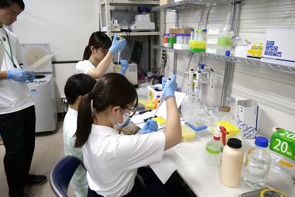 In the Okamoto Laboratory, recently, since protein degradation has been attracting much attention as a next-generation research topic in the pharmaceutical industry, we focused on the principle of protein degradation and conducted experiments and evaluations on protein-protein interactions using ubiquitin, which is considered important in proteolysis, and proteins called shuttle factors, which determine the proteolytic pathway. The high school students actually performed the experiments and evaluations themselves. This time, since we used laboratory equipment and devices that are not usually used in high school classes, we could see that the students enjoyed conducting the experiments even though they struggled with them.