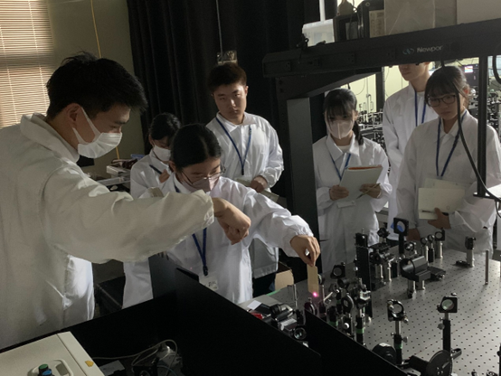 The students had the opportunity to tour the research labs and closely observe experimental apparatuses and measurement devices. This experience likely provided them with a clearer understanding of the research environment within a university setting.