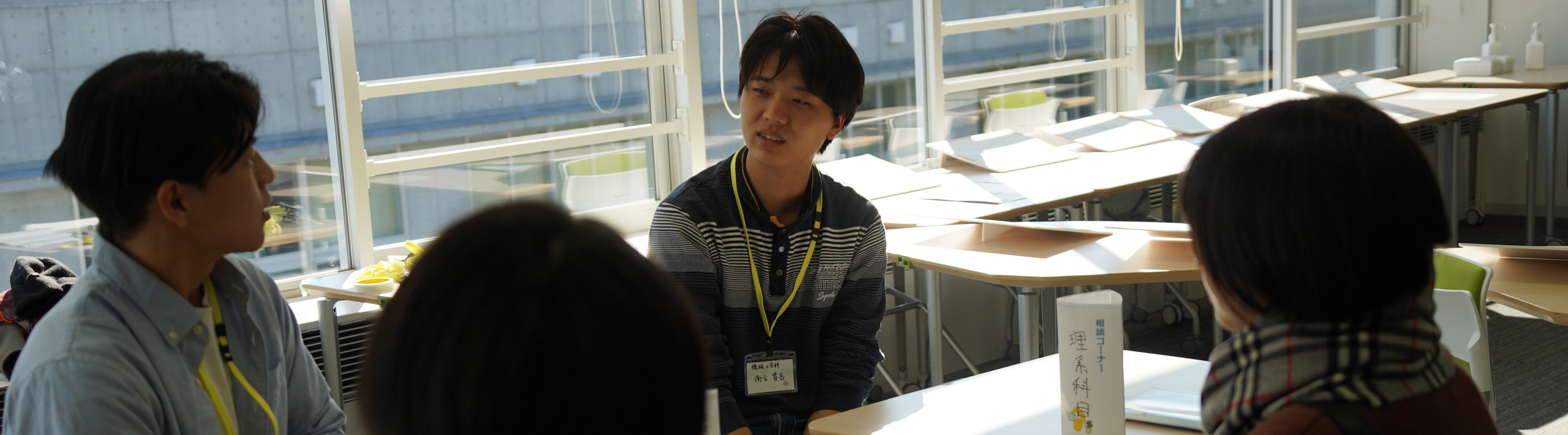 さらに、現役工学部生と直接話せる相談コーナーも設置し、受験勉強に関する相談をはじめ、多岐にわたる質問に対応しました。相談コーナーに限らず、ポスターの前など企画の各場面で来場者からの相談や質問を受けることが多く、工学部への関心の高さを実感しました。アンケートでは、「学生がとても丁寧に質問に答えてくれた」といった声も多く、直接交流できる機会が好評でした。