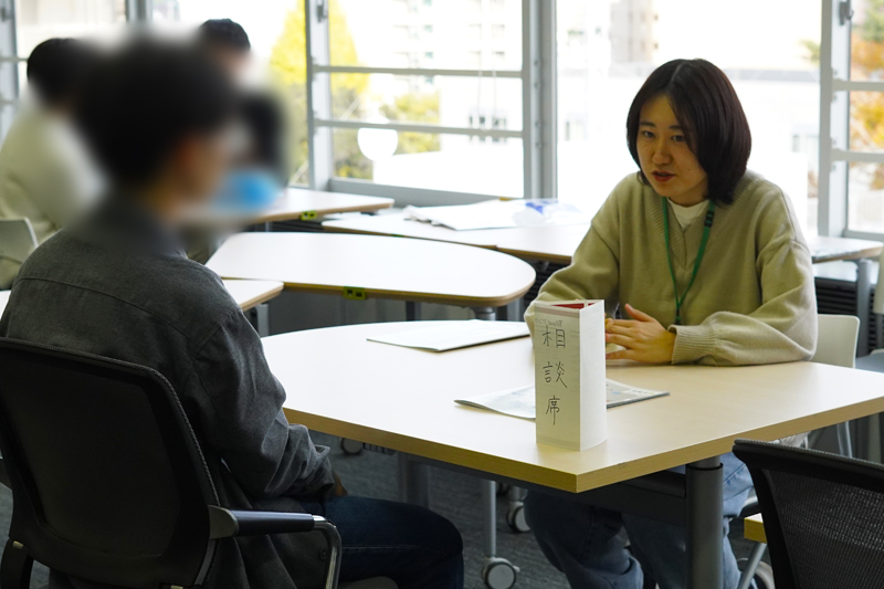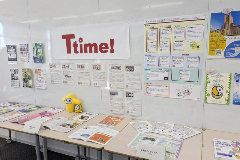 In addition, interview articles and the PR magazine Ttime!—all researched and written by student assistants—were on display. Participatory poster activities, answered using sticky notes and stickers, were also set up. The poster titled “Which department would you choose?” was particularly popular, with many visitors discussing their options as they selected their answers.