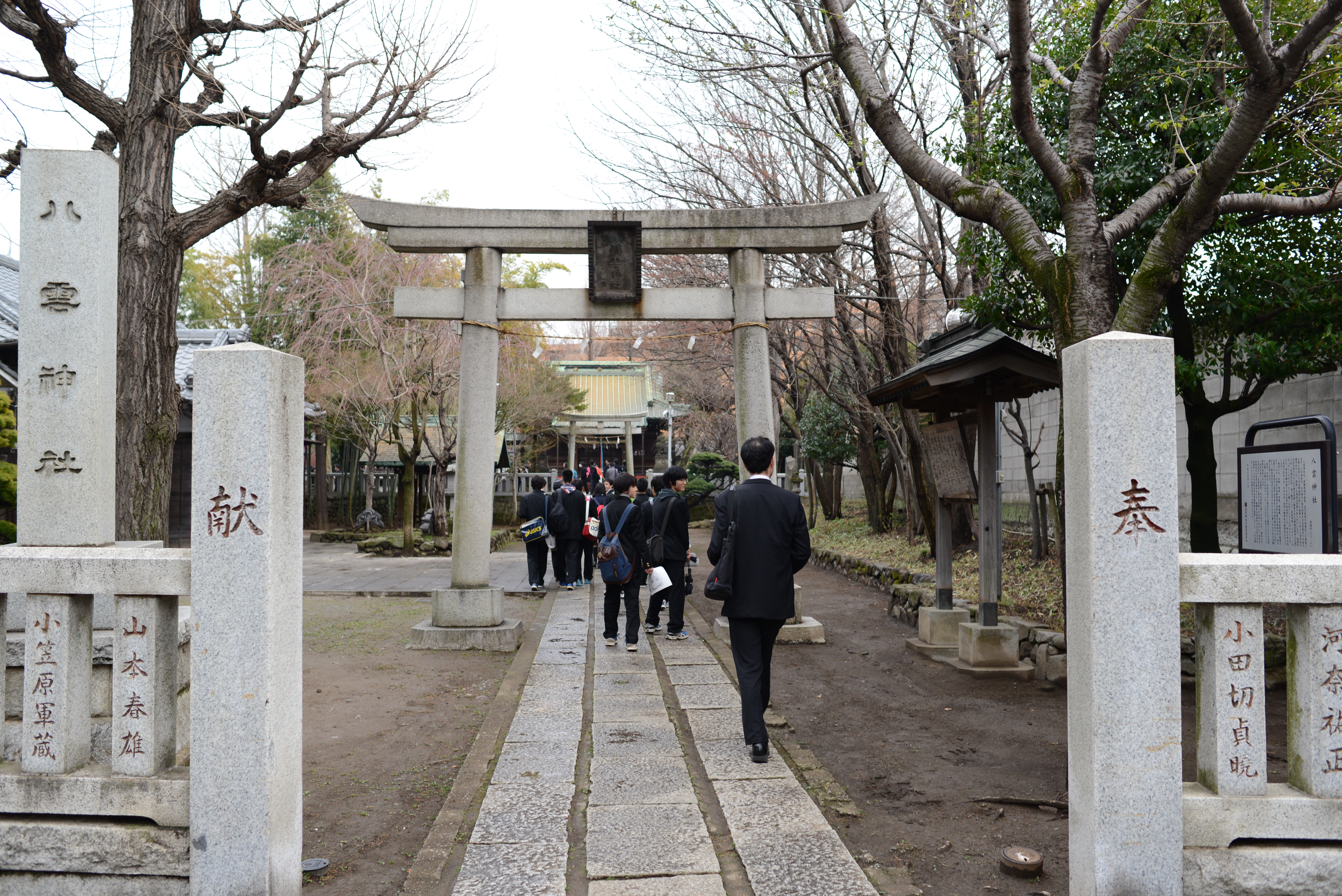 Started from AkabaneIwabuchi station, we observed Yakumo Shrine, some mitsuka (raised ground to escape from flood water), and so on, comparing the map in Meiji period.