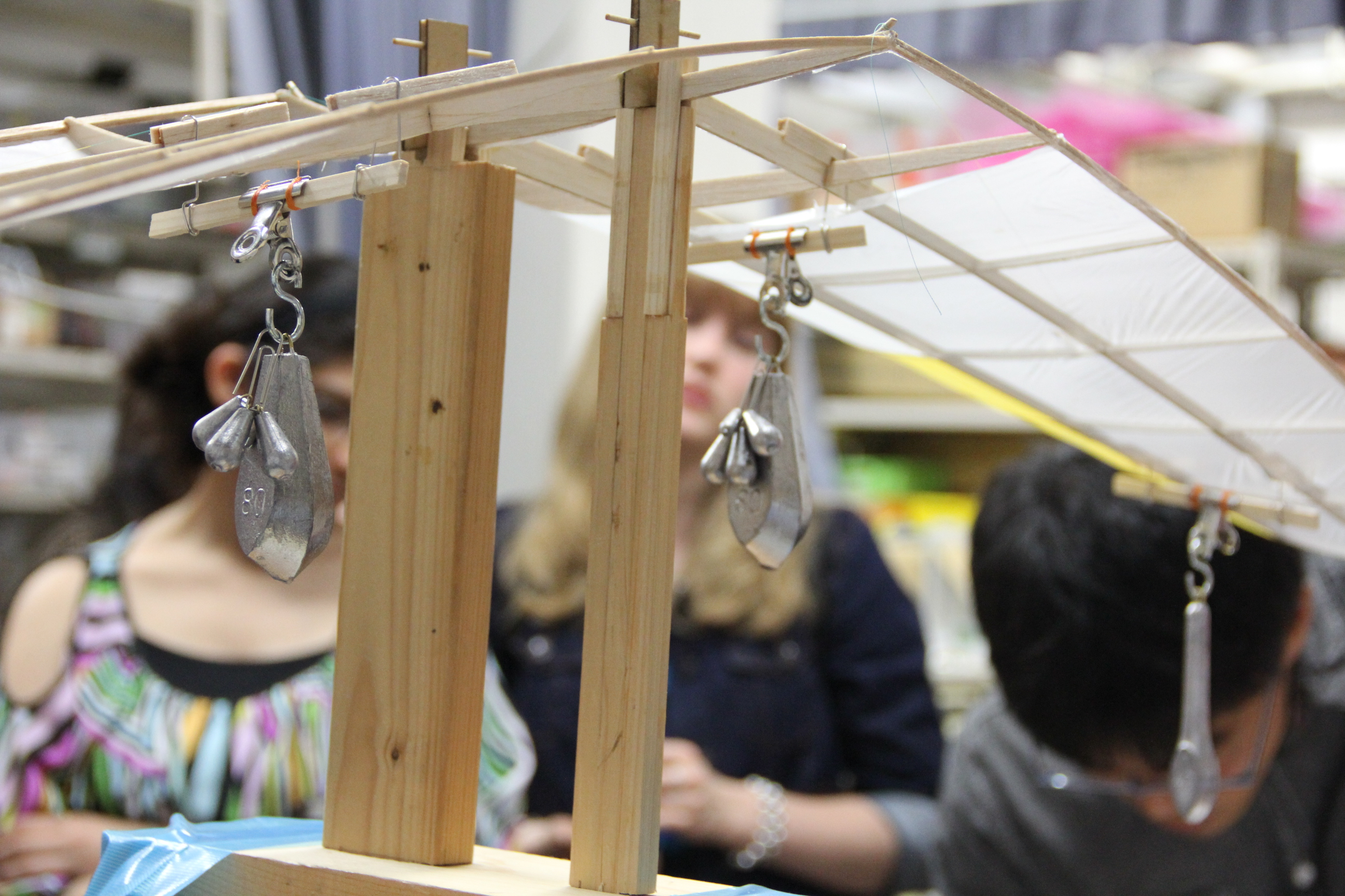 今週はアメンボの主翼破壊試験を行いました。この実験は主翼に重りを取り付ける方法で行いました。私たちは予め理論上翼根にかかるモーメントを計算し、どのように重りを取り付けたらそれを近似できるか考えました。5人それぞれが出した結果はお互い全く異なる値だったため、どの値が妥当か、なぜ値が変わったのか議論しました。実験は見学に来たMITの学生がみている中で注意深く、丁寧に行われました。しかし結果は予想と全く異なりました。予想通り主翼根で壊れたものの、かかっていたモーメントは予想のたった1/8でした。私たちはなぜそうなったか議論し、その中で材料の強度が予想よりもずっと小さかったことや重りの取り付け方など注意するべき点がたくさんあったことに気づきました。