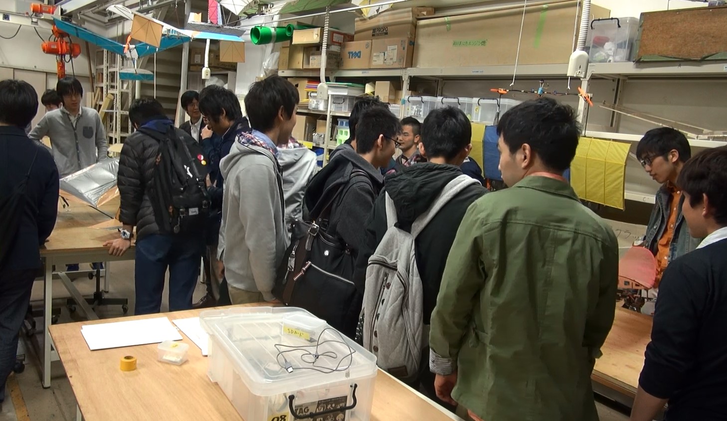 After that, Prof. Tsuchiya who is the professor in charge of this project, gave a lecture of a basic aeronautics. He took care to give simple explanations that could be easily understood by the new students, most of whom haven’t had much experience with aircraft. Professor Tsuchiya said that understanding technical terms of aeronautics could help their team activities. He also stressed that they didn’t need to memorize everything now, rather that the real world experience of building aircraft from this course would solidify the concepts.