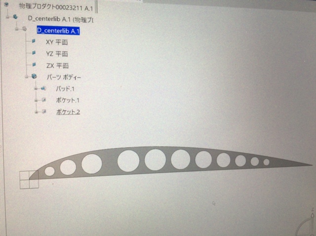 前回は、リブの数が無駄に多いわりにねじりのモーメントには弱いとの指摘を受けたので、リブの数を減らし、さらにけたを一つ追加したことで、重さはそのままに構造的に強いものとなった。また、CATIAの使い方をセンターリブの作成を通して学べたので、CATIAを用いたより効率的な設計、製作を行えるようになった。