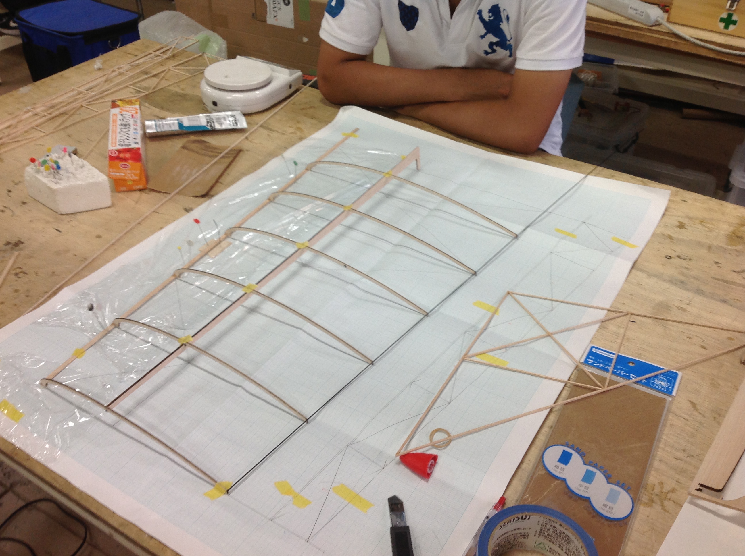今回はこれからの予定についてもチューターの方を交えて話し合いました。私たちは今学期中には主翼を完成させることを目標に行動しています。この目標を実現するため、明日木曜日に主翼及びエルロンの組み立てと、問題が見つかった部材の切り出しを行います。更に金曜日に主翼の骨組みを組み上げ、来週の火曜日に、主翼にビニールを貼り着け、エルロンとの結合を完了する予定です。