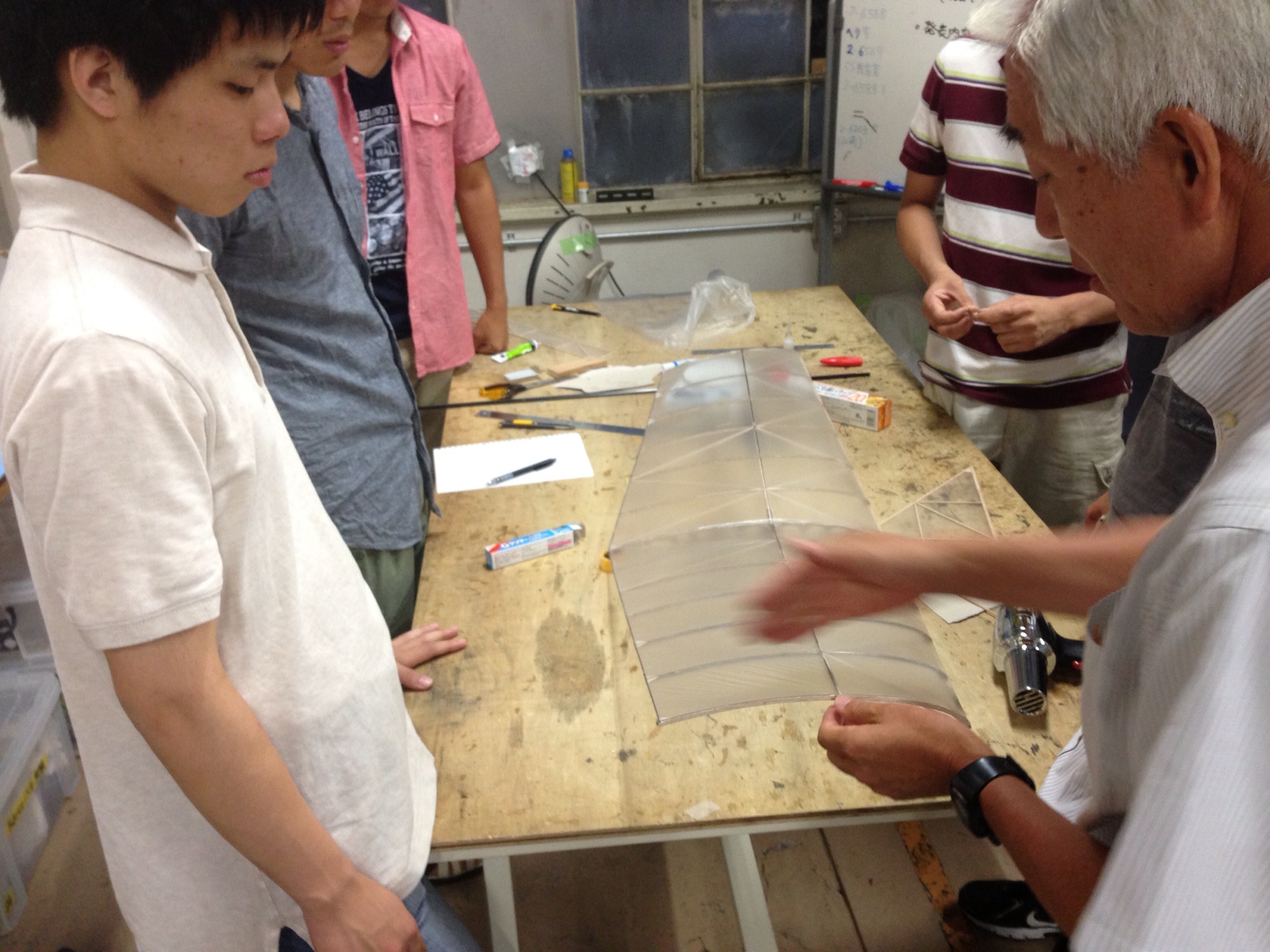 この日の授業のためにあわせて7時間近く、一週間かけて主翼と尾翼の組み立てをすることに成功しました。作業中は主翼のカバーフィルムを張ることが難しかったりと予想しなかった事態が多くありました。