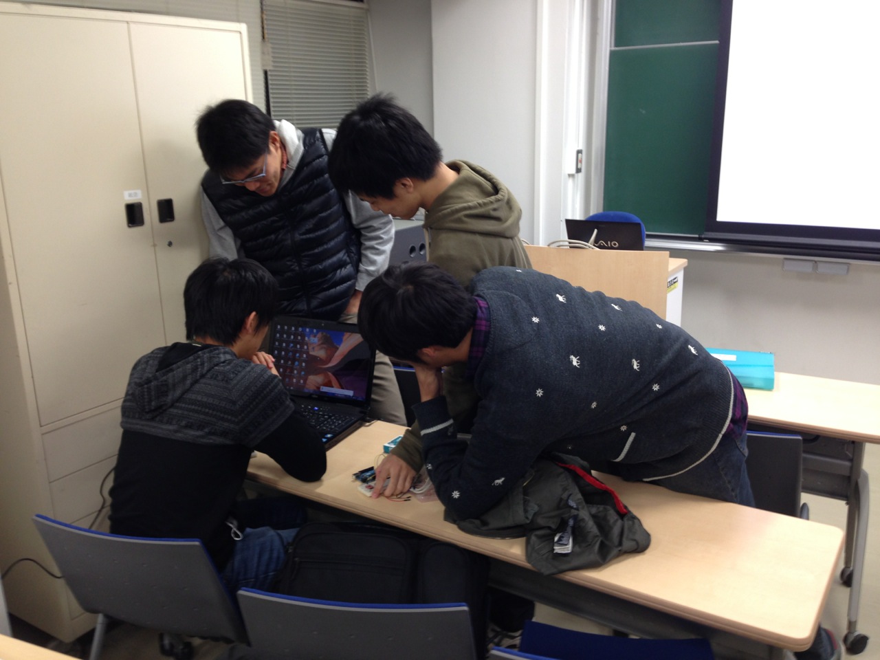 This week we asked Mr. Tsuchiya, who is an associate professor in the Aerospace Engineering faculty, to come to our class and discuss how to study the sensors. Now, we divided ourselves into three groups and we study each sensor in the group. However, we have not decided how to examine the approximation of the sensor yet. Thanks to Mr. Tsuchiya, we decided to conduct a simple examination and take some samples. By next week, we will calculate and learn what characteristics each sensor have using the equation of motion. 今週、私たちは土屋先生をお迎えして今後の飛行ロボットプロジェクトにおいてのセンサの開発方法に関する会議をしました。私たちは今3つの班に分かれてセンサの読み取りをしていますが、試験方法に関して詳細は決定していませんでした。土屋先生との話し合いにより、今あるセンサを使用して簡単にデータをとることにしました。また、その際に難しく考えすぎず、まずは運動方程式から値を予測しセンサがどのような特性を持つのかについて学ぶことにしました。